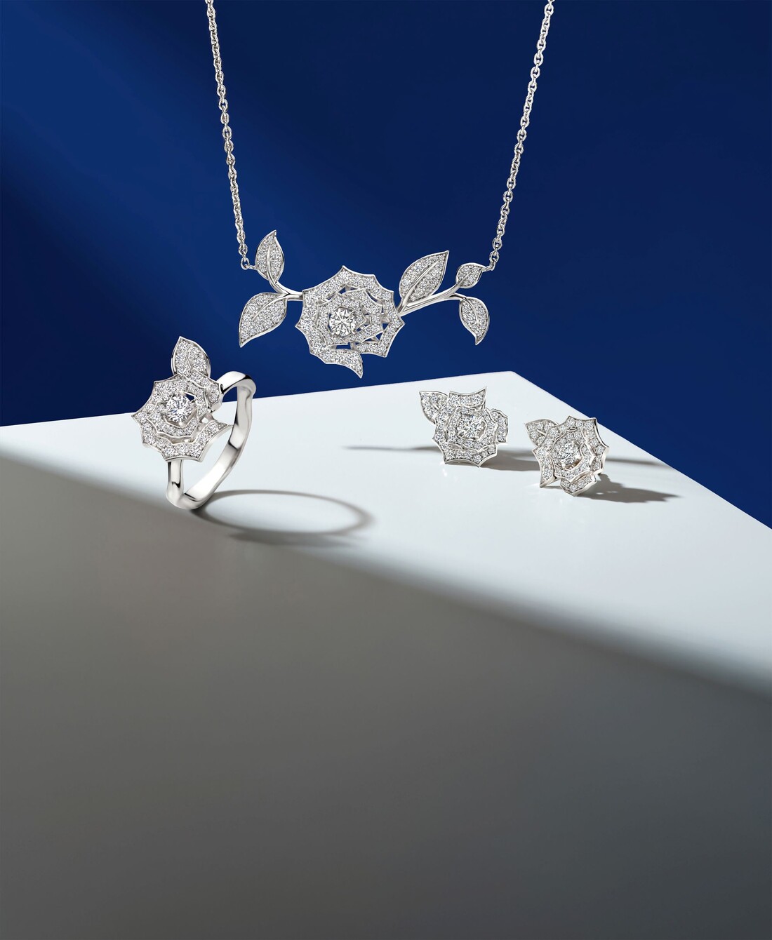 De Eternal Bloom collectie is geïnspireerd op twee van Prinses Delphine’s werken: My Self Portrait as a Rose en A Rose Protected by Love. De roos, een eeuwig symbool van schoonheid, veerkracht en liefde, vormt het hart van de ontwerpen. Rozen zijn een terugkerend motief in haar oeuvre en behoren tot haar meest persoonlijke vormen van expressie. Prinses Delphine begeleidde persoonlijk de ambachtslieden van BAUNAT bij het vertalen van deze thema’s naar een collectie van zes originele juweelontwerpen. Elk ontwerp is een sculpturale, draagbare roos, met de hand vervaardigd in 18 kt goud en bezet met natuurlijke diamanten. De collectie omvat ringen, oorbellen, hangers en een broche.