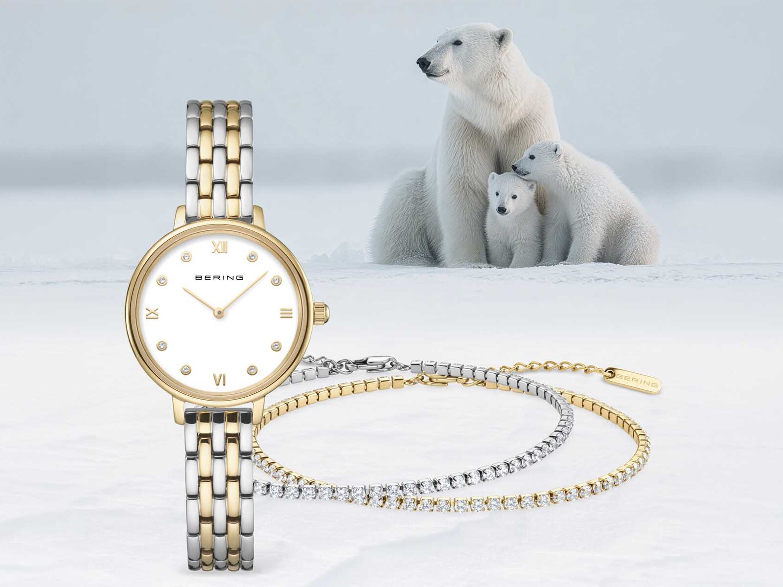 Met het oog op Moederdag 2026 presenteert BERING een aansprekende set die niet alleen esthetisch overtuigt, maar ook een emotionele lading draagt. Onder de noemer ‘In Time, Together’ staat de band tussen moeder en kind centraal. Die verbondenheid wordt visueel versterkt door het beeld van een ijsbeer met haar welpen in het Arctische landschap, een duidelijke verwijzing naar warmte, nabijheid en gedeelde momenten.